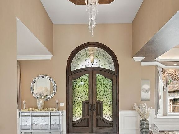Serene and Stately. Balanced with luxurious flair and exuberance. Custom and thorough with every detail attended too. Located in the prestigious Timberhill neighborhood, this residence is tucked into a quiet alcove on a premium lot. Seated hilltop with mature trees and privacy, one immediately is drawn to its presence. Timeless elegance with modern touches, more than a masterpiece, it's a retreat to call home. At its core, this home is a walkout ranch with clear presentation and function. Central open floor plan living areas with quiet retreats for bedrooms and offices. Stone facade, charming alcove entry and large driveway for all your guests. The main level provides all your necessities. A welcoming foyer that draws commanding views of the well-appointed finishes and bright wooded views. Upon entry it's breathtaking airiness and volume will envelope the senses. Sparkling chandeliers drip from the vaulted coffered ceilings, moldings are thick and wrap this space with sensible style. A dining room is open to the family and kitchen areas, offering a great space to entertain a formal meal during celebration. The gourmet kitchen is at the heart of the home. Ample seating, prep and presentation areas abound! A fantastic area to enjoy quiet dinners at home or charm a large group. Great function as well with shape and style. Top of the line appliances and a pantry that is expansive! Family room and living areas flank the kitchen and offer areas to stretch out. Formal and fun, both provide exquisite fireplaces, tremendous lighting, and beauty. Lots of light and open to a large deck great for taking a meal El fresco! First floor owner's suite is nestled off the living room and provides tray ceilings, hardwood floors, stunning views of backyard, access to porch and nice retreat. Double walk-in closets are perfect for all your storage needs and lead to a spa like bathroom. Escape in style into this space and enjoy a large soaker tub, double vanity, and huge shower. Additionally on the first level, is an office with views of the front yard, 2 bedrooms with ensuites and a large mudroom. The 4-car garage is located on the main level and provides lots of room for today's cars and toys. The walkout basement level takes this glamorous home to another level. Traditional and cozy, this space is made to entertain and play. Open concept is mirrored in the lower level with bar, dinning room, family room, theater, and game room all observable from the moment you walk down the stairs. An extra-long bar acts as a second kitchen, with all the appliances you need. It is raised from the area's below, a well-constructed design. Large theater has built in sound, lighting, and tons of seating. The game room is perfect for billiards, ping pong or a gym. A nice rec room provides space to sit with another great fireplace and has a large dinning area in tandem. Additionally in the basement you will find a 4th bedroom with ensuite and its own office! Finishing off the space you will find a pool room for a spot to come in to take a break from the sun, it has a lovely closet/locker system and full bathroom, this space can also become a 5th bedroom if desired. The lower level also has its own 3 car garage, complete with custom cabinetry and auxiliary driveway. Outside the home continues to awe! Take the plunge in a large saltwater pool! Large areas to sunbathe and enjoy all in the solitude of a luscious backyard. Under a covered deck, another seating area is perfect relaxing poolside. This area offers a 4th fireplace, outdoor kitchen with bar, fridge and built in grill. Come and see this truly marvelous home. It will hit on all your needs and dreams! Stunning beyond compare!