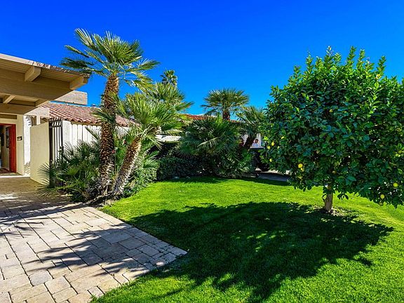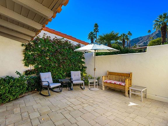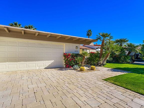 Possibly one of the best values on a unit in the subdivision right now! Beautiful home in Thunderbird Villas with interlocking pavers all the way through the driveway, walkway and front patio. This home is a 3 bedroom, 2.5 baths with vaulted ceilings, and an open kitchen. The back patio offers a good sized yard, a private Jacuzzi and the beautiful views over the Coachella Valley.Easy access for members to the Club via golf cart