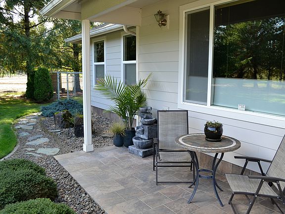 INDOOR ARENA MILES OF TRAILS 1800 SF 3 B/3 BA WITH GUEST QUARTERS Imagine yourself in this one kind pristine private secluded horse property. This 4.81 acres is accessed through the electronic entry gate and offers unlimited acres of riding to enjoy without the upkeep out your back door! Tiled, rocked and topped with crushed rock to insure a muck free horse property year round. The perimeter of property is fully fenced in 5 ft. no climb horse fencing with gated access to trails. All 5 pastures are treed to ensure green grass longer in the summer and provide shade for the horses. Approx. 100’ x 84’ barn with 6 matted stalls, (designed to easily add 2 more stalls), 3 with exit doors to large runs. Hot & cold wash rack with in ground drain. Tack room with concrete floor, extra tall covered shaving bin designed for the “big load” trucks, 2 speed hot walker, ample trailer parking and a full circular drive in front of barn for any size trailer. 60’ x 84’ indoor riding arena built to expand easily to your specific needs. 30’ X 36’ Hay barn with stall and 60’ x 60’ corral adjacent to separate pasture. Excellent space for stallion quarters, quarantine or overnight guests designed to easily add 2 more stalls. 30’ x 48’ 4 bay fully equipped insulated shop, concreted, with in floor hydraulic jack, office, loft, and full height R.V. parking. Custom built home features 3 Bedrooms 3 bathrooms 1800 sqft. with a 2 car garage that has a ‘bonus space’ with separate entrance, security system, full bathroom, walk in closet and kitchenette. Main house has a elegant master suite that features patio access to hot tub, walkin closet, and private bathroom. The main house also features forced air A/C, hard wired security system, large gourmet kitchen, 3cm thick exotic granite countertops, gas range, custom pull out pantry, hot tub, exterior hot/cold water to both rear and side of house, custom window top down bottom up blinds, blackout blinds, touch up blinds all included. The exterior of home has a tiled entry and rear patio, automatic watering system, under eve christmas light plugs, mature landscaping, water feature, tiled patio, fire pit, fully chain link fencing with adjacent separate dog yard and a double kennel with electric outlets, hot/cold water for easy dog baths. Apple, plums, cherry trees, high producing blueberries from commercial farm and ample garden space. Property is being exclusively offered for viewing to qualified buyers. Listed at only $529.900.00 Call/Text/Email Jesse 971-777-1280 for a viewing of this spectacular property.