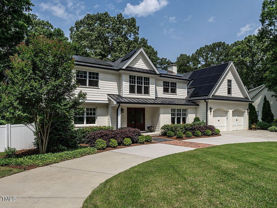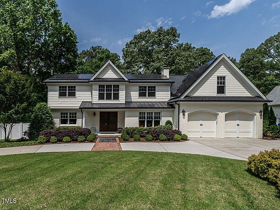 Spectacular property in the heart of Raleigh. An older home was lovingly renovated and expanded by the prior owner; tax records now state the effective year built as 2016. Delightful touches throughout give a nod to the original craftsmanship, including retention of original masonry walls. The front entry was opened up to flow directly into the fully-updated kitchen and living area with the original fireplace. Brick archways lead to the modern addition: an open plan living/dining room with vaulted ceilings and a wall of windows. A new first-floor primary suite with vaulted beam ceilings leads to a luxe bath with a walk-in shower, soaking tub, huge closet with built-ins and center island. Seller added extensive landscaping, irrigation, solar panels, Level 2 EV outlet, and sealed crawlspace. The home offers quick access to major highways, medical centers, NC Museum of Art, Crabtree Valley Mall, North Hills, and more. A path at the end of the cul-de-sac leads to the Greenway, connecting with Umstead Park. A rare opportunity for a truly unique property!