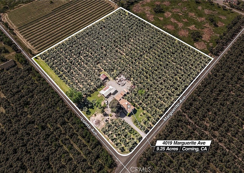 The land features mature, producing olive trees, beautifully maintained grounds, and flood irrigation supported by a newer agricultural well—ideal for farming or hobby agriculture.