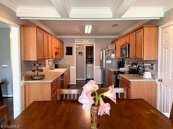 You will be so happy to be the first one to see this beautiful home! Updated flooring, ample entryway, freshly painted interior, garage is now a wonderful and huge den!, living room has vaulted ceilings and gas fireplace. Open and airy living/dining/and kitchen with stainless appliances. Dining room has beautiful coffered ceilings! The backyard is an oasis you will want to spend many hours in. Covered patio, privacy fence, storage building, and so many blooming plants! 2 car garage has been enjoyed as a large den,but can be converted back. Enjoy every season in this well cared for and move in condition home! Showings begin on Thursday,so make your appointment quickly!