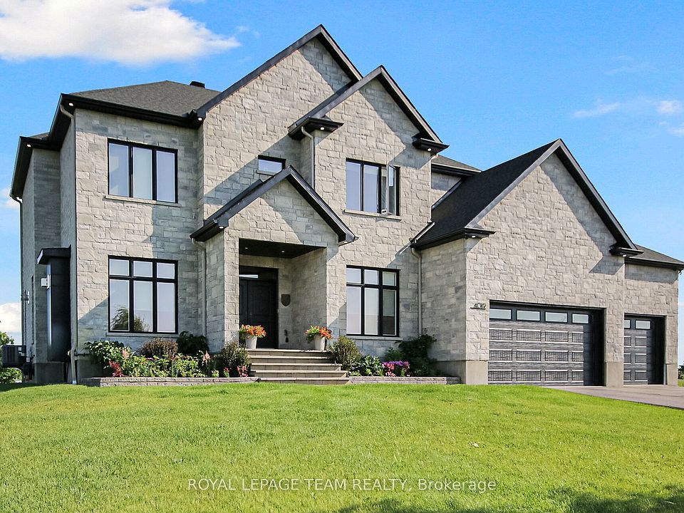 Nestled on a generous half-acre lot in the prestigious community of Greely, in Ottawa's desirable south end, this stunning custom-built 2-storey home with a fully finished basement is the perfect blend of timeless elegance and family comfort. Just two years old and offering approximately 3,800 sq.ft. of meticulously finished living space, every detail of this home reflects superior craftsmanship and luxurious design. Step inside to discover an inviting layout that features 4 spacious bedrooms and 5 well-appointed bathrooms. The custom decor showcases high-end finishes throughout, from rich hardwood flooring to tray ceilings and bespoke millwork. Three fireplaces provide cozy gathering spots, adding warmth and ambiance to both formal and casual spaces. The heart of the home is a gourmet kitchen equipped with top-of-the-line appliances, seamlessly connecting to the open-concept living and dining areas, ideal for entertaining. A private office, serene library, and dedicated exercise room provide flexible living spaces to suit your lifestyle. Upstairs, the primary suite is a true retreat with a spa-like ensuite and walk-in closet. The fully finished basement expands your living space with ample room for recreation and relaxation. Outdoors, enjoy the beautifully landscaped backyard with a spacious interlock rear deck and patio perfect for hosting or simply enjoying peaceful evenings. Beautiful new glass railing for the front step & rear deck area will be installed. The 3-car heated garage offers both convenience and comfort year-round. The Generac Generator will keep your home running through power interruptions. This home exudes classic charm while embracing modern family living - a rare opportunity to own a refined yet welcoming residence in one of Ottawa's most sought-after communities. (Please enjoy the 3D walkthrough by following the multimedia link)