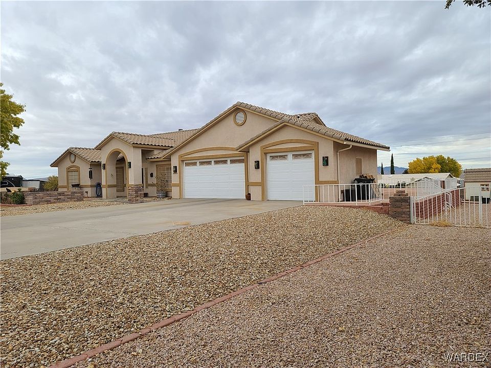 3 bed. 2 bath. 2,014 living sq ft. 3 car attached garage. Semi open floor plan with shutters/blinds on all windows, a few skylights, arched door ways, unique 'center kitchen' and RV parking. LARGE back patio (full length and wraps around sides too!) with a pergola extension. . VIEWS, VIEWS, VIEWS off back patio - step off the flagstone terrace into the rose garden & fruit trees (pear, apple, fig, apricot, plum, LEMON and pomegranate) plus 12 oleanders were just planted along the back wall. Storage shed and gardeners shed too. HALF ACRE lot (.58). Tile roof. Beautifully updated with fresh interior paint, plush carpet, wood laminate and fresh grout in tile. Beautiful new exterior carriage lights, front door, all new hardware on doors, new fans & fixtures, reverse osmosis system under kitchen sink, new high rise toilets, whole house water filter system, new sliding screen door to garage from laundry room, New water heater, new laundry vanity with stainless steel farm sink and faucet and new irrigation system in the fabulous yard. The backyard offers stunning views - the expansive patio is raised and the evening lights are quite the show! The front courtyard is tile and flagstone with a beautiful mature tree. Triple deep concrete driveway. RV parking on the side... Shown by appointment only.
