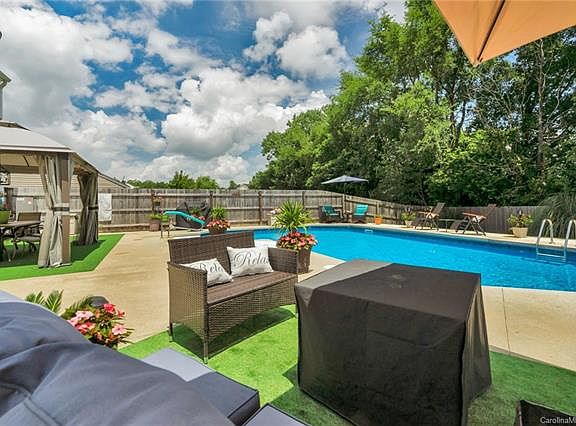 Wow, come see this fantastic home with beautiful salt water in-ground pool, oversized patio, big grassy fenced, private backyard! Cul-de-sac lot! Original homeowner! 5 bedrooms with guest on main. Adorable kitchen with beautiful granite countertops and backsplash opens to big family room with fireplace. Beautiful newer gas burner black stainless steel oven/stove. 2019 new carpet upstairs. Big, bright beautiful master up with big walk-in closet and 3 additional bedrooms. Pool has new liner 2018 with 10 year warranty and newer heater for the entire pool. Switched to salt water in 2016. Custom Pool cover. New 2020 Outdoor Gazebo! In ground irrigation keeps the beautiful grass green. Newer roof-2016. Conveniently located to 1-74 and I-485, shops and restaurants! Walk to Crooked Creek Park! Make this your fun new home! Home has just been appraised and is priced right! Available to see on 6-11