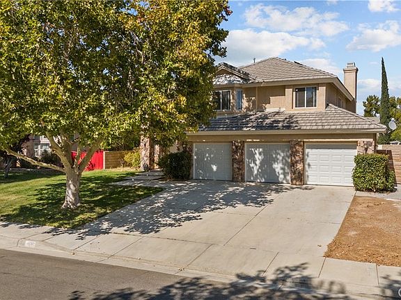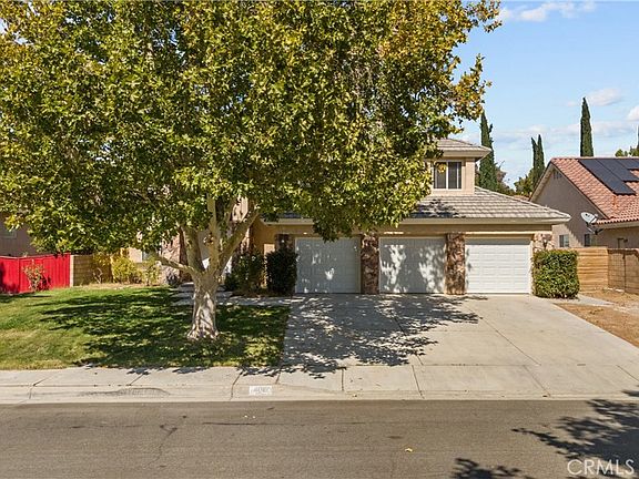 Welcome to 4019 Via Rebeca situated on a quiet cul-de-sac in West Lancaster. This turnkey home features 5 bedrooms/3 full bathrooms with a spacious open concept floorpan. Walking in through the double front door entry leads to an inviting living room and dining room. Kitchen has stainless steel appliances, plenty of storage, and double ovens for the enthusiast who loves to cook and entertain. Convenient dual staircases lead to the second floor. Double door entry leads to the primary bedroom, which includes a double sided fireplace to enjoy. Solar panels on this home provide energy efficiency at its best. The recently built pool offers unlimited tranquility with features such as multiple waterfalls, a wading area with a pair of luxury pool lounge chairs & umbrella, as well as a spa. No HOA and No Mello-Roos. This home is the epitome of an entertainer's dream backyard. Must see in person! Who's ready to be the new owner of this stunning property?