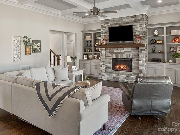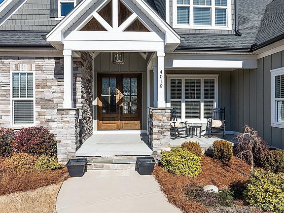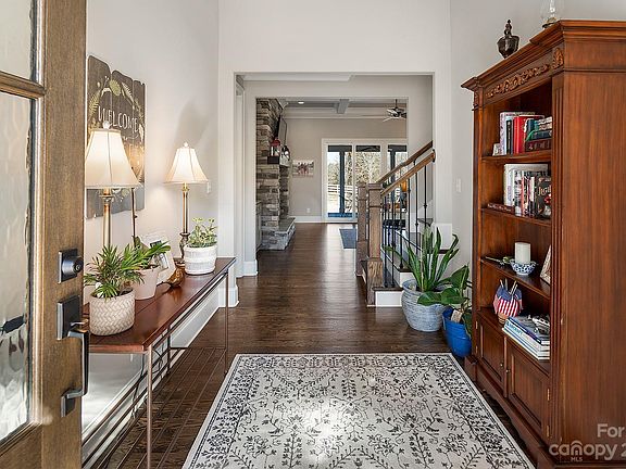 Stunning custom built home on 1.24 acre lot checks off all the boxes! Located in enclave, cul-de-sac community of 14 homes/lots. Gorgeous kitchen, huge island, stainless steel farmhouse sink, white cabinets/tile backsplash, light gray cabs on island & coffee/breakfast bar in large dining area. Expect to be wowed by hardwoods thru out main & 8' sliding doors in both kitchen & great room leading to either covered or screen porch, each overlooking large, level backyard perfect for pool/outdoor fireplace. Very tranquil setting yet close to North Lincoln/Rock Springs schools, shopping, dining. Tons of natural light. Open floorplan! Great Room has coffered ceiling, stone FP, built ins. Primary bedroom on main with beautiful decorative ceiling beam feature. Primary bath has huge step-in frameless glass shower. Walk in closet. Bedroom 4 on main with private ensuite bath. 1/2 bath/powder room & laundry on main. Upstairs bedrooms 2 & 3 along with full bath, oversized bonus room. 3 Car garage.