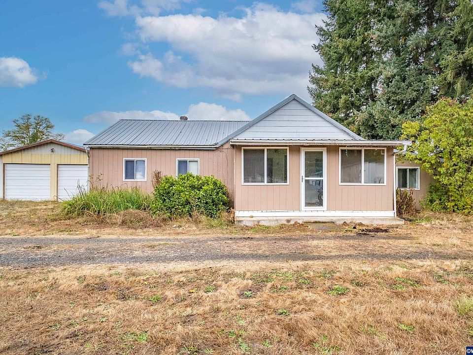 QUIET COUNTRY LIVING!! Situated on almost 5 acres sits this single story home w/ tons of potential & a metal roof. Inside features hardwood floors in the living room, open dining room/kitchen area w/ tile floors, nice sized bedrooms, tons of natural light, great sized bathroom w/ new tub & pedestal sink, & so much MORE! Large separate SHOP w/ lots of storage, storage shed w/ power & concrete floors, & a spacious covered patio to enjoy all year long. Don't wait!