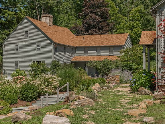 ONCE OWNED BY THE FAMOUS LYME SCHOOL IMPRESSIONIST, GUY WIGGINS, THIS GLORIOUS C-1764 CENTER CHIMNEY COLONIAL ON 5+ ACRES, HAS A COMPOUND FEEL, OFFERING A MAIN HOUSE, A LARGE DRAMATIC BEAMED ARTIST'S STUDIO/PARTY BARN AND A DELIGHTFUL 2 BEDROOM COTTAGE FOR IN-LAWS, AU PAIR OR TENANTS, WITH ITS OWN PRIVATE REAR TERRACE. THE MAIN HOUSE HAS MANY ORIGINAL DETAILS INCLUDING HAND-HEWED BEAM CEILINGS, WIDE BOARD FLOORS, RECALIMED PERIOD FACIA BOARD WALLS, LOVELY PANELING IN THE FORMAL LIVING AND DINING ROOMS, AS WELL AS THE LIBRARY, 5 WONDERFUL FIREPLACES AND FRONT/REAR STAIRCASES TO THE UPPER FLOOR. THE RESIDENCE ALSO HAS A LARGE WELL DESIGNED, LIGHT FILLED KITCHEN WITH A VERY SPACIOUS AREA FOR INFORMAL DINING OVERLOOKING THE GROUNDS. OUTSIDE EXTENSIVE PROFESSIONALLY LANDSCAPED GARDENS ARE EVIDENT, WITH STONE WALLED FLOWER BEDS FILLED WITH BOX WOODS, MULTIPLE VARIETIES OF PERENNIALS AND SPECIMEN TREES. A FULL SIZE IN-GROUND SALT WATER POOL WAS RECENTLY INSTALLED AND DESIGNED BY RENOWNED SCOTT POOLS FOR ENJOYMENT AND EXERCISE IN THE SUMMER. A VERY IMPRESSIVE AND EXPANSIVE, CRUSHED STONE FORECOURT GREETS YOU ON ENTERING THE PROPERTY, WHICH NICELY TIES IN THE THREE BUILDINGS, PROVIDING AMPLE PARKING FOR SEVERAL VISITORS. LOCATED 2 MINUTES TO THE HAMBURG COVE MARINA, FOX HOPYARD COUNTRY CLUB , LYME LIBRARY AND THE LYME ELEMENTARY SCHOOL AND ONLY APPROXIMATELY 10 MINUTES TO ART MUSEUMS, SHOPPING AND I95. A VERY ELEGANT PROPERTY AND WELL WORTH SEEING FOR ITS SPECIAL AMENITIES!