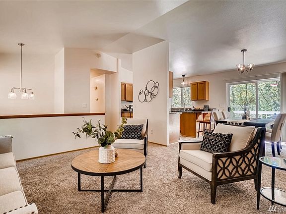 Welcome home to 1.16 acres of territorial views & landscaping paradise in the PNW. Lounge in your private backyard complete with gazebo & hot tub. Private balcony to enjoy evergreens & watch the hummingbirds. Walk through the forest with switch back trails, pond & stream. Close to shopping & park-n-ride. New carpet, newer roof, updated bathrooms & kitchen w/ granite counter-tops. Upgraded electric outlets & lighting fixtures. This home has endless possibilities a perfect fit if you want privacy.