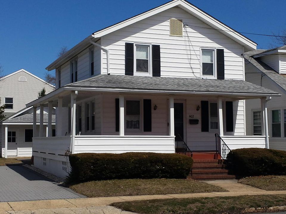 PRICE REDUCED. A beautiful Colonial located just 3 blocks from the ocean but is not in the flood zone and was not impacted by Sandy. This lovely home has a newly redone wrap around porch and many other newer upgrades. The house has hardwood floors in the living room and formal dining room as well as the upstairs hallway. There is a new paver driveway, new gas heating system and the vinyl siding and windows have been recently upgraded. There is a large eat-in kitchen as well as a full sized unfinished basement This wonderful property also includes a small cottage in the rear of the property with 2 bedrooms, a kitchen and 1 bath which will require some TLC but will allow for summer rental income.
