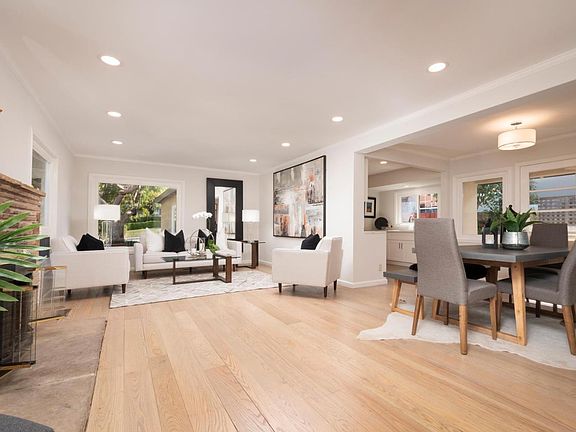 Situated on a beautifully landscaped corner lot, this remodeled home is a stunner! The kitchen has just been updated featuring quartz countertops, crisp white cabinetry and new stainless steel appliances. Refinished hardwood floors and fresh paint throughout the interior make this home primed for its next owner. The large living room boasts picture windows and a wood burning fireplace, and the dining room has a glass door to the backyard deck. There are three spacious bedrooms and a full bathroom. The lush backyard features a large stone patio with canopy, fire pit, built-in Fisher & Paykel DCS outdoor grill, lawn area, and fruit trees. There is a two-car garage with a washer, dryer, and additional half bathroom. This immaculate home is move-in ready!