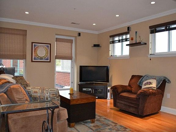 Beautiful 2-bedroom, 2-bath condo apartment featuring a rare 500 sq ft private terrace accessible from both the living room and bedroom perfect for outdoor entertaining or quiet relaxation. This unit features oversized windows, hardwood floors, crown molding, custom window treatments, California closets, renovated bathrooms, and central A/C and heat. The kitchen is equipped with a dishwasher and GE appliances, and there's a washer and dryer conveniently located in the unit. The building offers great amenities including a gym, landscaped courtyard, and bike rack in the garage. One covered parking spot is included in the rent. Close proximity to fine dining, supermarkets, Parks, bars, gyms, NYC Bus transportation, NJ Ferry and so much more. Sorry no pets! Landlord is NOT interested in corporate leasing. Month & half security deposit, one month's rent, one month's broker's fee, and $40 credit check per applicant due upfront. First months rent not due until August 1st, 2025. Also, the condominium complex chargers a move in/out fee, each way.