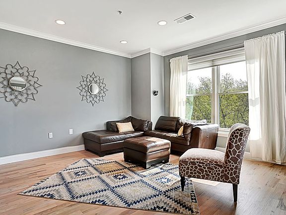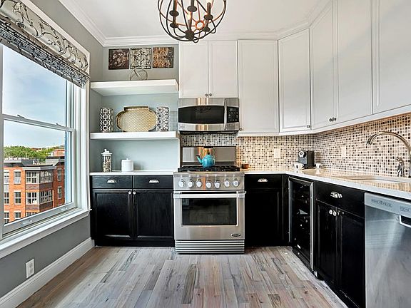 Welcome to this beautifully renovated, coveted top floor corner home with open layout at the Columbus. This sun-filled unit features a newer designer custom kitchen (RJD Designs) with SS appliances, 5 burner DCS stove, 40 bottle wine refrigerator and beautiful cabinetry. Kitchen opens up to a sizable DR with southern NYC views that can seat 6-8+ people comfortably. The bright, open concept LR area is perfect for entertaining and boasts oversized windows that overlook the green tree tops of Columbus Park and NYC. This home has two incredibly oversized bedrooms, one a master en-suite with spacious custom walk-in closet, beautiful bathroom & enough room for a sitting area/desk/nursery area. The 2nd bedroom is spacious with 2 large closets and can accommodate a king sized bed or multiple beds and then some! Both bedrooms enjoy eastern exposure overlooking the park and NYC. Home features Porcelanosa full baths, central AC (new 8/19), W/D in unit, replaced oversized quiet Pella windows (6/17), new refinished white oak hardwood floors (10/19), upgraded lighting fixtures & crown molding throughout, and both eastern & southern exposures. Enjoy deeded garage parking (possible 2nd parking spot to rent), elevator, newly renovated gym & landscaped courtyard. This building is next to Columbus Park with a beautiful children's playground, tennis courts, 1 block to NYC transit, 4 blocks to the Light Rail, blocks to Shop Rite and Trader Joe's, a short walk to the NY Waterway Ferry, great shopping & restaurants!