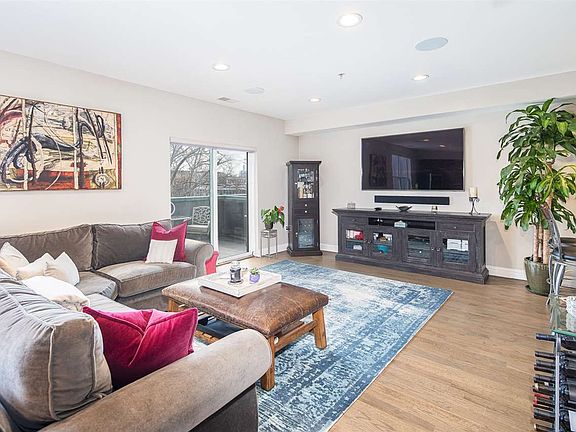 Welcome to one of the largest layouts at The Columbus. Rarely available, this 2 bedroom, 2.5 bathroom duplex is an eastern facing home that overlooks Columbus Square Park and has partial NYC views. Kitchen features stainless steel appliances, black granite countertops, 2 toned kitchen cabinets, tile backsplash, and breakfast bar. Just across from the kitchen is an expansive living area with an attached dining room outfitted with an 8 person dining table, expandable to 12 comfortably. The living room offers 7.1 surround sound with speakers hidden inside the wall. Enjoy coffee on your private terrace just off the living area with direct views of the park. Upstairs you will find both bedrooms and two full bathrooms that have both been remodeled. Washer/dryer and linen closet located upstairs as well for convenience. With just under 1,600 total square feet, this home additionally offers Nest Thermostat paired with smoke detectors, Hunter Douglas automatic honeycomb blinds and Sonos speakers wired throughout 8 different rooms for sound. The Columbus offers 1 deeded parking spot, secure keyless entry, elevator, newly renovated gym & landscaped courtyard. This building is next to Columbus Square Park with a beautiful children's playground and sprinkler park, tennis courts, 1 block to NYC transit, 4 blocks to the Light Rail, Shop Rite and Trader Joe's. Just a short walk to the NY Waterway Ferry, great shopping & restaurants!