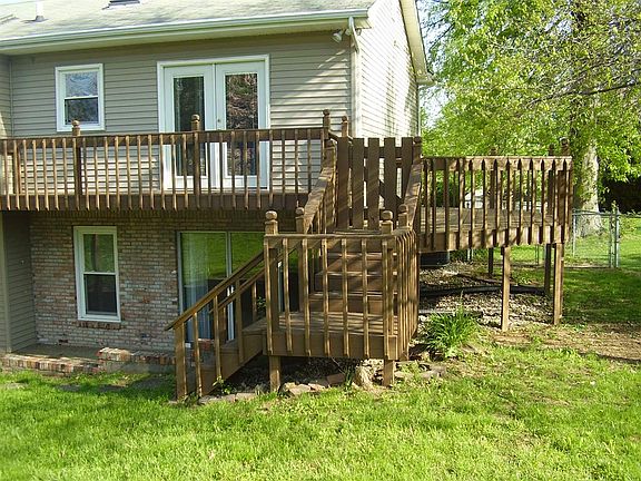 Four bedrooms with 2 and half baths. Great room with fireplace and built ins. Two Family Rooms in lower level that walk out to backyard. Master bathroom has tile, skylight, and garden tub. New carpet in great room,bedrooms,and family room. New front door.New water heater. Large deck for cooking out. Lower level walks out to backyard. Quiet cul-de-sac. City school district.