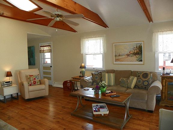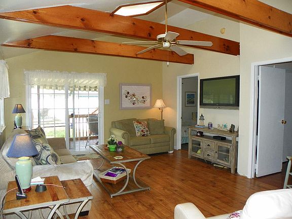 Stroll down to the bay in the morning with your coffee, in the afternoon with your beach blanket, and in the evening to enjoy the wonderful sunsets; you will be that close to the bay. Gather with friends and family in the roomy dining room, the large and sunny living room with cathedral ceiling and skylights, or on the wrap around deck near the above ground pool. The 4 bedrooms offer plenty of room for your guests. There is a full hall bath and an extra half bath next to the master bedroom and there is a very large walk-in closet in the master. Central air and heat are less than 3 years old. The center kitchen is open to both the dining room and the living room which offers good flow for entertaining. There is a large pantry closet for all your kitchen supplies. Plus the kitchen is just steps to the deck with a gas grill that is plumbed directly to the natural gas line. No worrying about running out of propane for your outside grill. The one car detached garage has electric, making it an easy place to have a work shop. Plenty of off-street parking in the driveway. New gas hot water heater.
