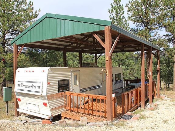 Rocky Mountain retreat Get-Away located just South of the Arkansas River is a 9+- acre gently sloping piece of land with a well, a septic, a solar /generator electric system and a 35 foot travel trailer. The property has been lovingly built and cared for. Now that it is time for the owners to move on to new adventures, they are offering it for sale, to be passed on for someone else to enjoy ans make memories of their own. It includes an entry gate, 2 sheds, a carport and low mileage Vacation-Aire travel trailer that is covered with a pole barn style metal roof. The electrical system consists of solar panels, an invert er, and a generator. The water system has a pressure tank and the septic is County Approved. The travel trailer is 1 bedroom and 1 bath, a living room and kitchen, and comes fully furnished. There is a wooden deck outside the trailer. Trees are mostly Ponderosa Pine and Gambol Oak, with some Douglas Fir and a few Aspens. The grid electric line is next door, according to the owners, who have spent many memory filled years enjoying their mountain get away. This Colorado Mountain gem can't be seen from the road. Offering true privacy.