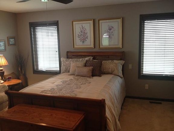 Beautifully finished townhome on quiet cul-de-sac. Zero step entry from two car garage. Large walk in closet in primary bedroom. Office/den in addition to three bedrooms. Great home for a retired couple. See Falcon Crest Point HOA for covenants and restrictions. HOA fee of $130/month includes lawn care and snow removal.