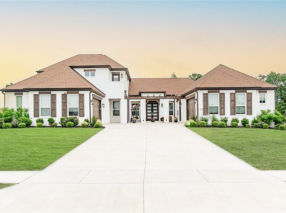 If you have been waiting to get into the Otter Creek subdivision, this is your chance! Located just minutes from Rogers, Bentonville, Springdale, Mt. Hebron Park, Razorback Greenway, and the Promenade. This gorgeous home starts with an open courtyard flanked by two 2-car garages. The curb appeal is stunning, with professional landscaping and a sprinkler system to keep your lawn looking healthy all summer. The luxurious split floor plan boasts 5 bedrooms as well as a home office. The master bedroom and 2 additional en-suite bedrooms are located on the main level with 2 more bedrooms upstairs. Two living areas, a spectacular covered patio, game room, media room, and oversized kitchen with double ovens, and professional fridge provide ample opportunity for entertaining. Gas log fireplaces in both living areas keep you warm and cozy year-round. Outdoor lovers will enjoy lounging on the covered patio that leads to a heated pool as well as the community amenities that include trails and a basketball/tennis court.