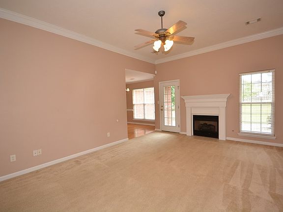Brick ranch with private fenced backyard that backs up to green space. Great Room with fireplace, Huge Owner's suite with sitting area. Neutral colors, split bedroom floor plan with high ceilings. Move-in ready. Massive backyard. Great neighborhood with walking trails, pool, and clubhouse. Located on a cul de sac with little traffic. Perfect for small kids and growing families.