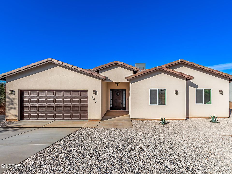 Seller willing to contribute to buyer's closing costs with an accepted offer! Ask about zero‑down programs, this home may qualify. Priced right and positioned to move quickly.Discover elevated living at 402 Cancun Ct, Rio Rico, AZ 85648, a brand‑new 4‑bedroom home offering modern design, quality construction, and stunning mountain views.Step into a bright, open layout featuring sleek tile flooring, contemporary lighting, and a neutral palette that complements any style. The kitchen delivers both function and impact with espresso cabinetry, quartz countertops, stainless steel appliances, a walk‑in pantry, and a center island ideal for everyday use or casual conversation.The spacious main bedroom includes a private bath with double vanities and thoughtful finishes offer versatility for guests, work, or personal space.