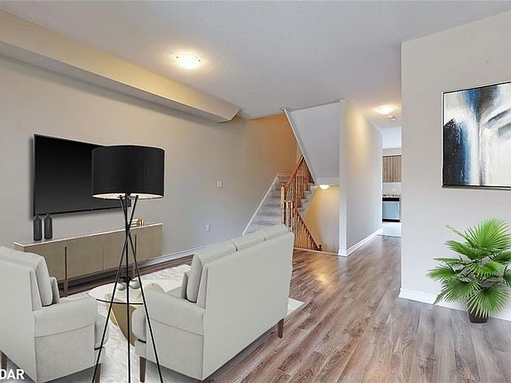 Remarkable 4 bedroom + 4 bathroom townhome in Angus. Fully finished with over 1900 Sqft of living space. Ceramic floors, laminate and carpeting throughout. Master with walk-in closet and full ensuite. Professionally designed eat-in kitchen and breakfast area and bright spacious dining/living room space with big bay window. Lower level features 4th bathroom and bedroom, as well as family room with walkout to yard and inside entry to garage. Minutes commute to Base Borden, Alliston and Barrie. Quick closing available.