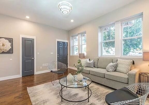 Come see this fully renovated, sunlit 2-bedroom apartment, ideally situated just minutes from schools, shops, restaurants, and convenient NYC transportation, making your commute a breeze.The unit features a massive living room with gleaming hardwood floors throughout, creating a warm and inviting atmosphere. Both bedrooms offer ample closet space. The modern kitchen is a chef's delight, boasting brand-new stainless steel appliances to meet all your culinary needs. At the rear of the unit, you'll find a spacious, private backyardperfect for relaxing, hosting cookouts, or enjoying some fresh air. This unit includes an in-unit washer and dryer, and small pets are welcome. Don't miss this incredible opportunityschedule your showing today before it's gone!