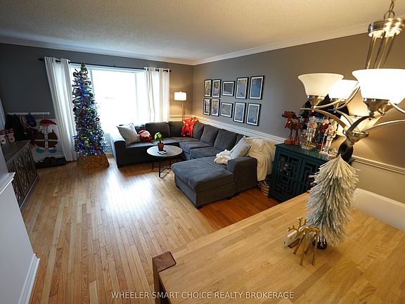 Welcome to your families next home. This well-maintained property offers a bright and functional main floor featuring an updated kitchen with abundant cabinetry and workspace. This home has a spacious living/dining area highlighted by hardwood flooring and crown moldings. Upstairs, you'll find three generous bedrooms and a 4-piece bathroom with a relaxing soaker tub. The primary bedroom includes patio door access to the backyard-perfect for morning coffee or quiet evenings. The finished basement adds valuable living space with a large rec room, a combined 2-piece bath/laundry room, and a convenient crawl space offering extensive storage. Recent updates include new patio door and side door, Gas Furnace and Shingles (2016).Step outside to a fully fenced backyard complete with a screened-in gazebo, a good-sized patio, and interlocking walkways-ideal for entertaining or relaxing with family. This home is truly move-in ready and waiting for its next family to enjoy!