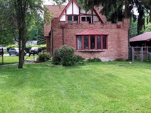 Classic Fox River frontage with 2 lots. Brick Tudor style with 31' center hall! Tons of woodwork and custom wrought iron. Lots of hardwood floors and slate floor in hall.2 Fireplaces. Oversized 2 car garage with appartment above with own laundry and attached party/office room. Pecky cypress wood. Living room with 18 foot ceilings. 5 bedrooms. Classic tile in both baths. 3640 sq ft main house. Nice sea wall,deck. Property in estate-sold as is.