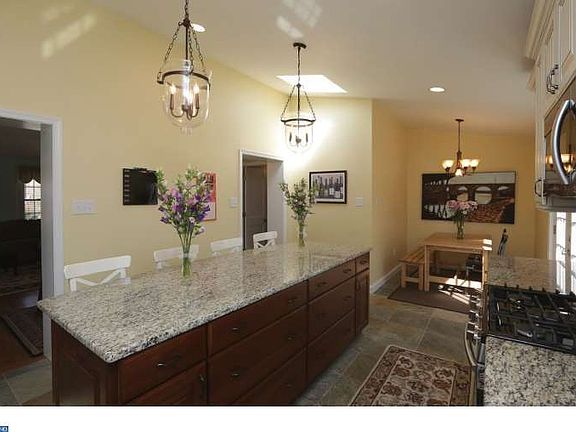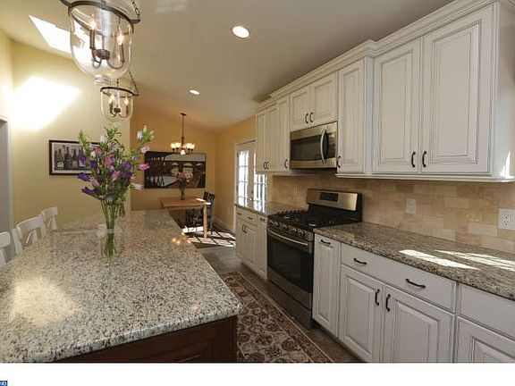 Beautiful Oreland Move In Condition Colonial. Covered Front Porch, Enter to Large Living Room with Hardwood Floors, Brick Fireplace, Neutral Decorator Paint colors. Ample closet space. New Eat In Kitchen with Large Island. Plenty of Cabinets, Gar Range, Built In Microwave, Farmhouse Sink. Kitchen Island in contrasting Wood has Seating for Four and Beautiful Glass Pendant Lights, Ceramic Tile Floors. High Ceilings with Recessed lighting and a skylight. Breakfast Dining Area with Atrium Door leading to Large Rear Patio and Fenced Yard. Second Floor with Three Nice Bedrooms all Freshly Painted with Wood Flooring. Two New Full Ceramic Tile Bathrooms. Garage is used for storage only.