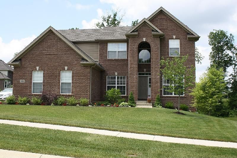 Outstanding value on this incredible 2 story brick walkout situated on one of the prettiest lots in this quiet community overlooking a pretty tree line. Impeccable professionally landscaped islands and beds surround the home. Enjoy sunset views from your deck and pergola! This home has been exceptionally well cared for and has had some very nice updates i.e. recessed lighting in kitchen, living room and master bedroom, fireplace surround, hardwood in some previously carpeted areas, upgraded fixtures, carpet, irrigation system etc. just to name a few! Beautiful covered front porch leads into a two-story foyer and a main level with all hardwoods, 9-foot ceilings and recessed lighting. OPEN FLOOR PLAN with an abundance of natural light and lots of windows!