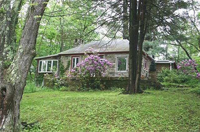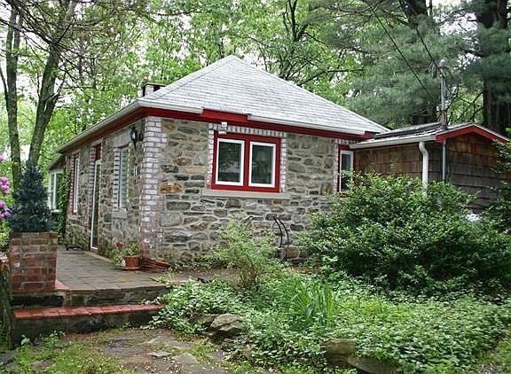 Quaint and Picturesque Stone Cottage, privately situated on nearly one acre of beautiful, wooded tranquility. Home is warm and welcoming, with wide board floors and fireplace in the living room, stone walls and slate flooring in the MBR, and a claw-foot tub in the lg bathroom. LR also has a wonderful white-washed brick fireplace w over-sized mantle for treasures. The kitchen has a lg butcher block prep area and granite counter tops. Both the master bedroom and bath have lg skylights to bring the sunshine in. Another lg room extends the full length of the house, and has windows all around, displaying a panoramic view of the outside, plus sliding glass doors leading to the lg, level backyard. This room can be a family room, or a second bedroom with ample space for a computer work corner and sitting area. Live here year round or use it as a getaway for peace and tranquility. Located just 1.5 hours from NYC, and with easy access to the train, it's an ideal commute location.