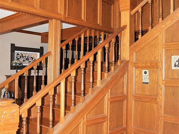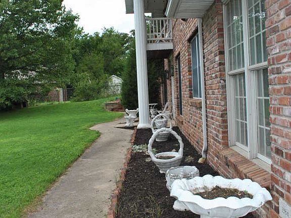 One of a kind, brick earth berm home, built by a local wood craftsman, Ike Barger. Grand staircase with handcarvings and tin ceiling above welcomes your guests. The brick wall around the fireplace gives the living room a cozy feel. The master suite has a jetted tub, walk-in closet, and laundry hook-up! Upstairs has wood floors and ornate light fixtures. Stained glass windows are found throughout the home. Kitchen connects the family room and dining room with a huge walk-in pantry. Dining room has built-in cabinets with glass doors. The family room could be 5th bedroom. Garage on the west end is a double stack 4 car garage! There is another 1 car garage on the north end of the home. Has an electronic gate at the entrance and a fully fenced yard. You won't find another one like it