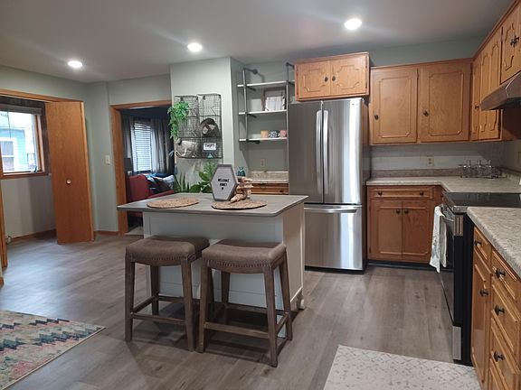 From the moment you step inside you'll feel at home! So many updates! Starting in the very spacious dine in kitchen - new lighting, ceiling, appliances, paint, cabinet hardware, shelving, island and faucets. In the main floor bathroom - newly resurfaced tub and surround, new faucets, lighting and paint. New carpet, feature walls, (entertainment shelf can stay with home) lighting, blinds and paint in the living room and foyer. The large main floor bedroom (which will easily accommodate a king size bed) has new carpet, blinds, lighting and paint as well. Fresh paint in the upstairs bedrooms and bath. Main floor laundry adjoins kitchen. The exterior of the house and garage was painted this past summer. New gutters, front landscaping and fresh stain on the large backyard deck. This one is ready for you to move in, unpack and enjoy! Owner/Agent