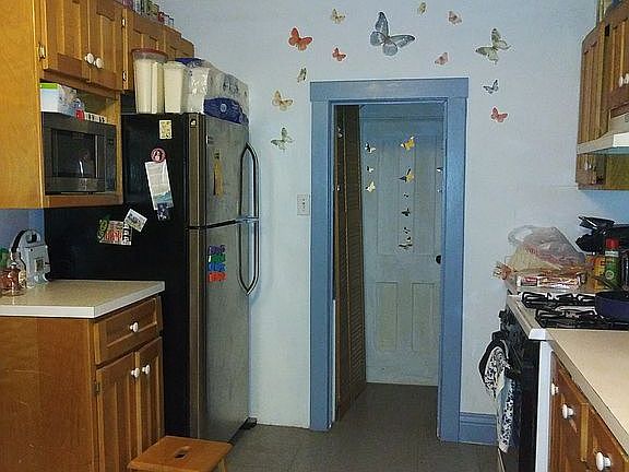 3 season porch. 4 bedroom, 1 bathroom, kitchen, dining room, living room, unfinished basement and attic. Storage room attached garage and barn. Fenced backyard with fruit trees new furnace. New roof. New sump pump.