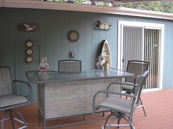 Well maintained manufactured home in Westwood Village with large covered deck, boat dock, and 4 car detached garage (1,152 sq.ft. built in 1999). Large great room that opens onto very large deck. Lots of built in storage space in garage and home. Home is on one lot and garage and dock are on the other. Each lot has a septic.