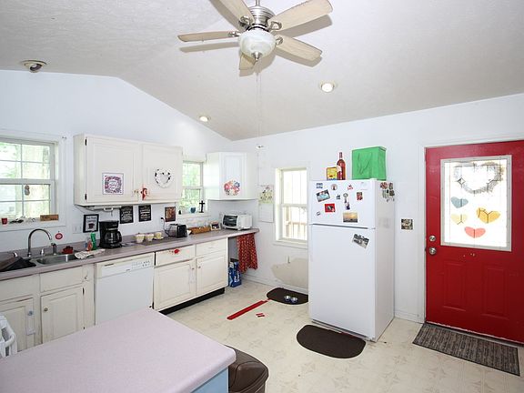 Extra lot 30.75x123.75 Home has a covered porch which would be great for relaxing with a cup of coffee. Awesome vaulted living room, Newer appliances. New HVAC. Oversized 2 car heated garage/shop. Extra garage with roll top entry used for storage of lawn equipment.