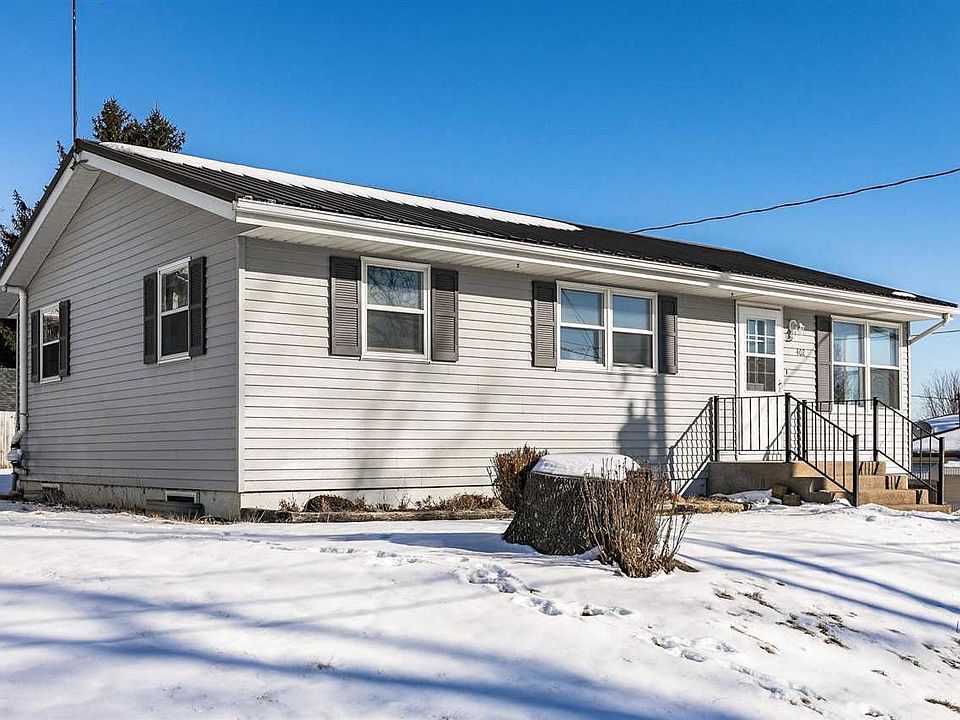 Renovated 3 bedroom ranch home with refinished hardwood floors in the living room, hall and 3 bedrooms. New vinyl plank flooring in the kitchen, freshly painted ceilings and walls. New kitchen appliances. New garage door with opener and key pad. Newer metal roof. Great yard shed with concrete floor and electricity. New mini split heating/cooling. Radiant ceiling heat. Newer window in bathroom. Sink and shower in basement. Home is in great move-in condition.