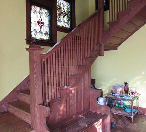 Beautiful Historic home with lovely Oak woodwork, open staircase, ,hardwood floors, lead glass & stained glass. Many updates including vinyl siding, wrap around porch, replacement windows on second floor & basement, beautiful new bathroom up with Jacuzzi tub. Many Built in bookcases throughout this home. Central air is 10 yrs. old & laundry room on main level. Situated on three lots with a nice patio with privacy fence & two car garage. Must see to appreciate.
