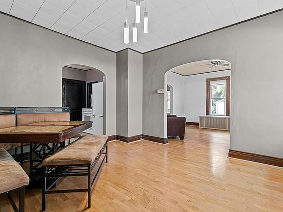 Arched doorways and character abound in this two bedroom, one bath two story home near parks, schools, churches and downtown. Gorgeous hardwood floors throughout most of home. Kitchen with gas stove included, has access to a cute porch. Formal dining room flows nicely into the living room. Beautiful staircase leads to the upstairs where there are two generous sized bedrooms and full bath. Laundry (washer/dryer included) in lower level w/work bench area. 1 car garage. Make it yours today! Heat is hot water heat.
