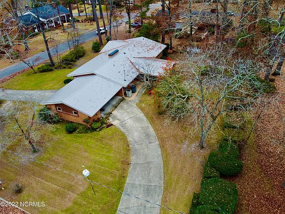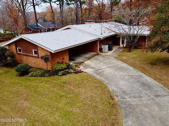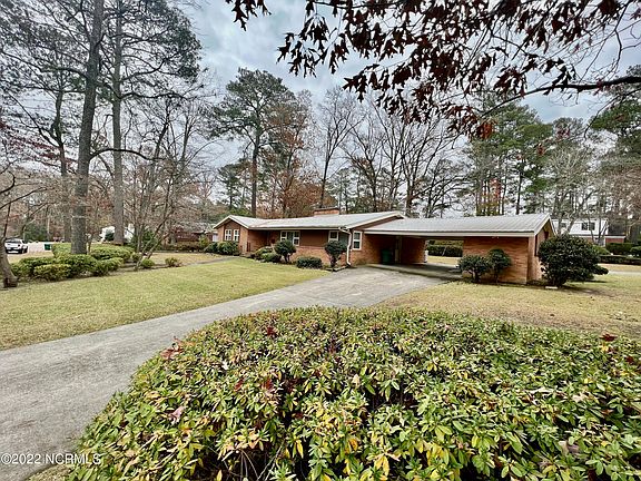 Custom-built brick ranch positioned on a lovely large corner lot E. Vance and Bigg in older established neighborhood near downtown Williamston. 3-4 bedrooms (4th was designed as a nursery off the master then later converted to an in-house office. 2 full bathrooms, partially remodeled and a 1/2 bath. Large kitchen opens into den with fireplace (bricks were salvaged from Cecil B. deMille's home in Washington, NC where he spent his childhood.) Large sunroom added on to back of home with Jenn Aire grill for the ''outdoor griller'' in you! Spacious formal dining room and living room with hardwood floors. WIndows have planter's blinds. All bedrooms have hardwood floors. Covered carport enters from Vance and curves out the back onto BIggs. Storage closets connect in carport. Lots of built-in shelves in den and iiving room. New metal roof installed in 2021. Huge concrete floored basement with lots of possibilities. House has exposed beams in den. No steps inside house, very maneuverable. Large laundry room off kitchen Double ovens and cooktop. Room for 2 refrigerators! Lovely dogwood trees curve over front walkway.