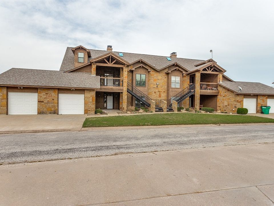 Welcome to your lakefront condo at Possum Kingdom Lake! This 3 bed, 3 bath condo is the perfect retreat for those seeking comfort and relaxation in a picturesque setting. Open and airy floor plan that seamlessly connects the living, dining, and kitchen areas. The living room features large windows that offer stunning views of the lake, while the kitchen is equipped with stainless steel appliances, granite countertops, and freshly painted cabinets. The master suite offers a spacious walk-in closet, dual vanities, and an updated shower. This condo includes new downstairs flooring, updated HVAC, updated water heater, updated windows and more. The covered balcony is perfect for enjoying your morning coffee or evening cocktails while taking in the tranquil views of the lake. In addition to the stunning interior features, this condo offers access to a range of amenities, including golf, tennis, pools, fitness center, and marina. Boat slip K-12 at the Cliffs Marina conveys with the property
