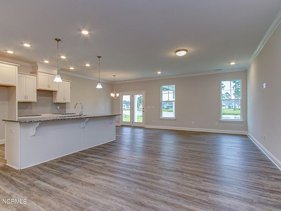 Enjoy one-story living, a low maintenance lifestyle in the Midland II, by Windsor Homes. This exquisite 3-bedroom, 3-bath home offers an open floor concept. The primary suite is in the rear of the home for privacy and includes a large walk-in closet. The primary ensuite bath offers a beautiful tile walk-in shower, tile flooring, dual sink/vanity with quartz countertops. The transom windows in the baths add natural lighting. You'll value the beauty of the granite countertops with timeless white cabinets in the kitchen with the subway tile backsplash and under cabinet lighting overlooking the spacious great room. Luxury vinyl plank flooring is in the main living areas providing easy maintenance and durability. The laundry/mud room with tile flooring is perfectly located as you walk in from the two-car finished garage to the kitchen. The bonus room and third bath are located upstairs. Discover Ruffin's River Landing located only minutes from Holden Beach. Conveniently located to Hwy 17 providing an easy drive to Oak Island, Southport, Wilmington, and Myrtle Beach! New Construction! Photos are SIMILAR and are for illustration purposes only, interior, and exterior features, options, colors, and selections will differ. WH2001.