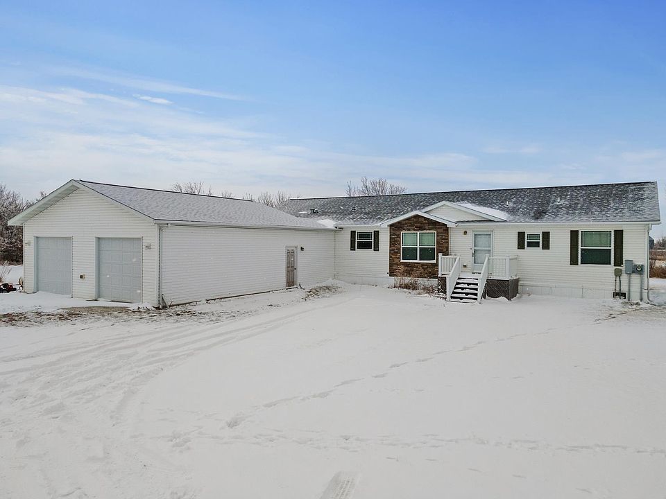 Home & Garage To Be Moved... Imagine this spacious double-wide sitting at the lake or maybe on your own private lot! Manufactured in 2012, this home was purchased from Iseman Homes and measures 32x68. This home has TONS OF SPACE with an appealing exterior of white vinyl siding and a Front Porch that leads inside to the open concept Living Room, Dining Room, and Kitchen. The Kitchen has lots of Cabinetry along with a BIG Island in the middle and Stainless Steel Appliances. The Dining Room is right off the Kitchen and Entryway and leads into the Carpeted and Nicely Sized Living Room for all of your Family Gatherings. Down the Hallway on one side of the Home is the Master Bedroom that features TWO Walk-In Closets and a Ensuite 3/4 Bathroom with DOUBLE SINKS! There is also an Additional Room with a Deck used as an Office space. On the other side of the home, you'll find Two Additional Carpeted Bedrooms (BOTH with Walk-In Closets) and a Full Bathroom with DOUBLE SINKS! The Laundry Room, Mud Room, and Mechanical Closets can be found on your way to the Double Stall Garage that measures 28'x32'. This Great Home & Garage could be yours for just $160,000, and then moved anywhere you'd like! Call your Realtor today for a private showing!