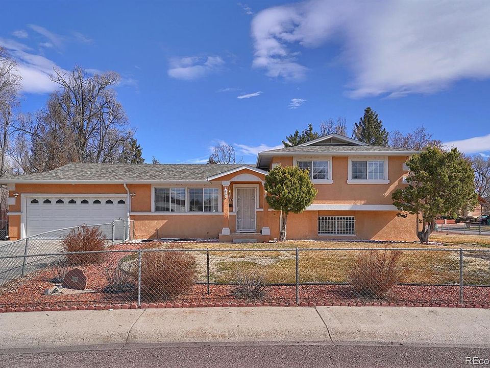 Wonderful 4-level home in the area of Widefield that features 4 bedrooms, 4 baths an office plus an oversized 2-car garage. Low maintenance stucco exterior situated on a corner lot with a fenced-in yard perfect for RV parking. Hardwood floors in living room with large picture window and built-in bookcases which flows into the dining room with crown molding. The kitchen features slab granite countertops, a full array of appliances and plenty of cabinet space. The upper level master has hardwood floors, an attached ¾ bath and a double slider that walks-out to a private deck. The 2 additional upper level bedrooms both feature hardwood flooring while the main level bedroom has tile flooring. The family room has vinyl flooring and there's an additional family room with wood paneling. Multiple outdoor entertaining spaces plus a built-in ramp in the garage. Close to shopping, dining and military bases. This will move fast! SOLD AS IS, MULTIPLE OFFER SITUATION OFFERS DUE 03/28/20 BY 1 PM MST