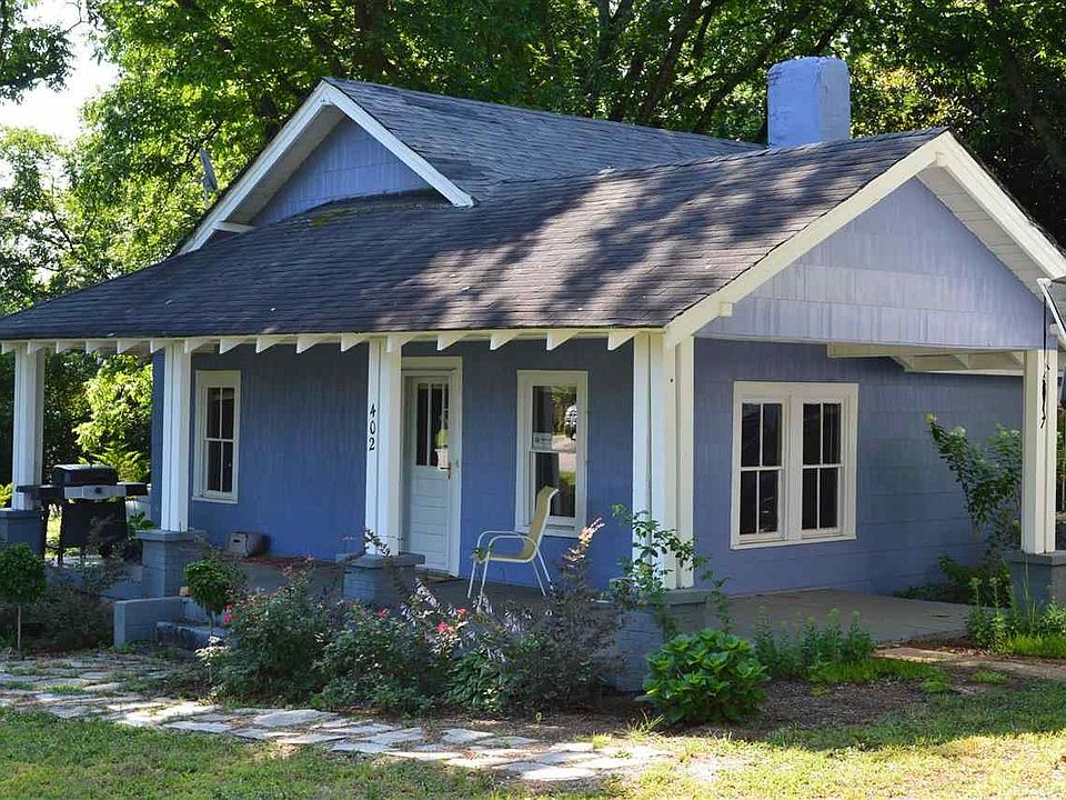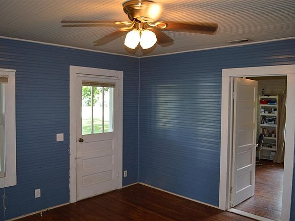 The quintessential farm house! Nestled among towering Pecan trees, this bungalow has pine flooring, bead board walls and ceiling and a wrap around front Porch. Two Bedrooms feature ceiling fans, as does the rest of the home with the exception of the Bath and Laundry Room. Kitchen has new vinyl flooring as of 2022, pine snack bar and electric Range. A spacious Dining Room is also provided. Need an art Studio, Office or guest quarters? One of the two outbuildings has been wired and plumbed for a Bath but will need to be finished. A Porch area is attached to the Back of this building. Another storage building and detached carport are located at the rear of the property. A 20x16 ft. deck was added in 2017.Beautiful corner lot with mature Pecan trees, blueberry bushes and fruit trees. Circle driveway. Warm propane heat and central electric A/C keep you comfortable year round. If you are looking for a charming farm house in the country but just minutes from town, this home definitely deserves your attention.