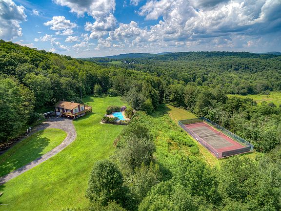 MOUNTAINTOP CHATEAU-37+ ACRES-Enjoy total privacy & breath taking views from this exciting 3 bedroom 2.5 bath country contemporary. Featuring open floor plan, living room with cathedral ceilings and large brick faced fireplace, family room with second fireplace. expansive decking with breathtaking mountain views. Pool, hot tub, and tennis courts!