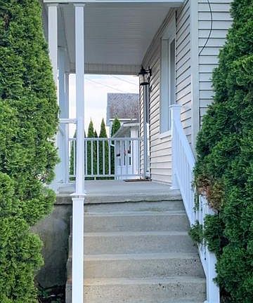 You will totally appreciate what this quaint home has to offer! Entering from your new front porch into the living room you will notice new flooring and lighting fixture. The first floor has an updated full bath with tile surround and a laundry/mud room. The open stairway in the updated kitchen leads to the two bedrooms with an abundance of closet space. The second floor full bath and walk-in closet are only a few years old and the size of both will amaze you. The CENTRAL AIR system is 3 years young. The roof was installed about 8 years ago. You will find plenty of off street parking in the back yard as well as a newer shed and patio. This home is WELL maintained and you will be thrilled to call this HOME!
