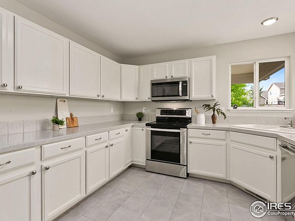 This stunning 5-bedroom, 3-bathroom home is completely turn-key and ready for you to move right in! As you step inside, you'll find an inviting open living area perfect for entertaining and relaxation. The spacious kitchen, dining area, and living room feature a double-sided fireplace, creating a cozy ambiance and a hint of sophisticated division of space. This home has been meticulously updated with newly refinished wood floors, fresh carpet, and both interior and exterior paint. The kitchen has also received ample upgrades including professionally painted cabinets and sparkling newly finished countertops with new hardware. The master suite is a standout feature, offering generous space, walk-in closet, double-sinks in the bathroom, and an extra door escaping to the upgraded covered patio. On the main level, two additional bedrooms with a full bath follow a desirable split floor plan. The basement adds to the living space with two additional bedrooms, an office, a full bathroom, and a bonus rec/living room. Outside, you'll find a charming front patio with views of the plains at the end of the street, along with an extended backyard patio, perfect for outdoor gatherings. Don't miss the opportunity to see this stunning home in person - schedule your visit today!